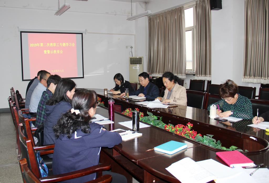 4月8日下午,必赢官网在07509召开2019年第二次教职工专题学习会暨警示教育会。在校院领导和教职工参加了会议,院党委书记吴文国主持会议。