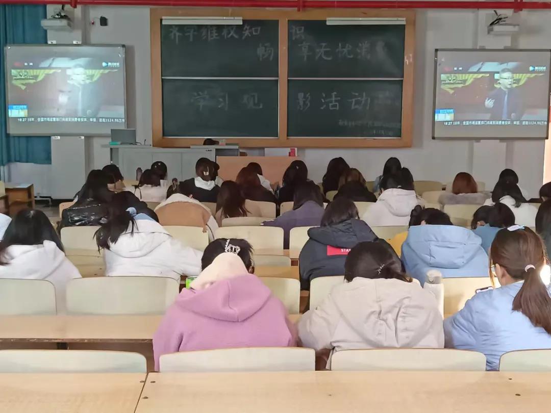 本次活动共分为宣讲讨论、观影问答、知识宣传和集体签字四个环节。活动过程中主持人为参与者解答日常维权问题,同时参与者在观影后通过抢红包、群抢答等形式回答相关问题,学生们表现出了极大的积极性,最后在活动横幅上留下了自己的名字。