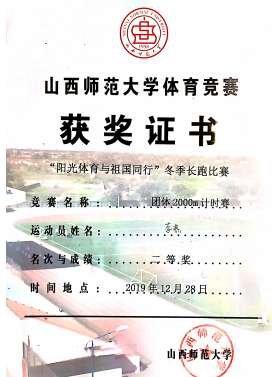 2019年冬季长跑比赛团体二等奖