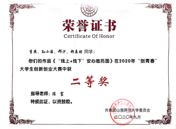 2020年“创青春”大赛二等奖