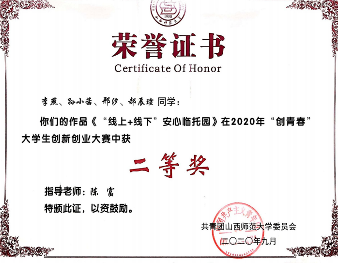 2020年“创青春”大赛二等奖