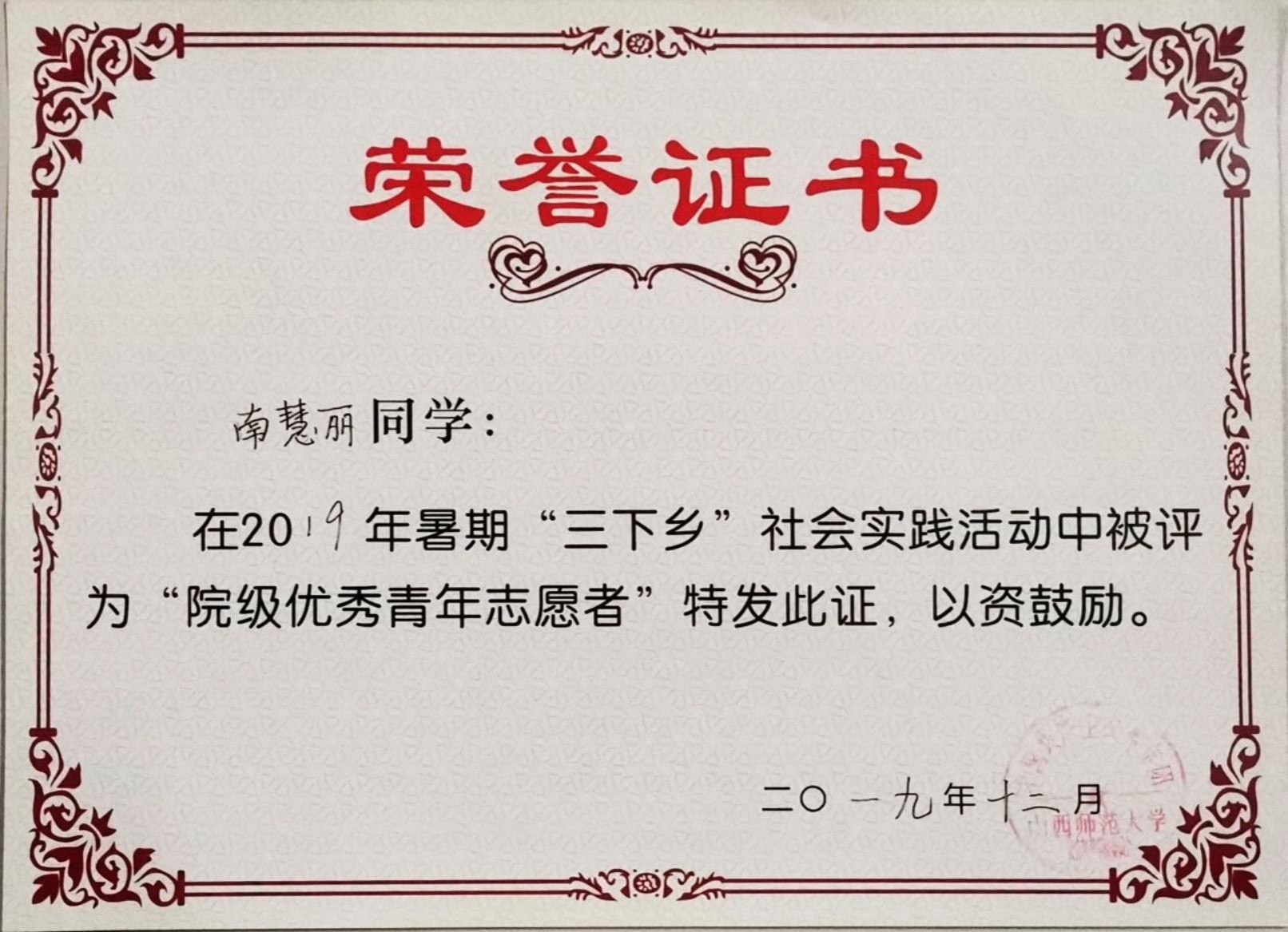 2019奶奶暑期三下乡“院级优秀青年志愿者”