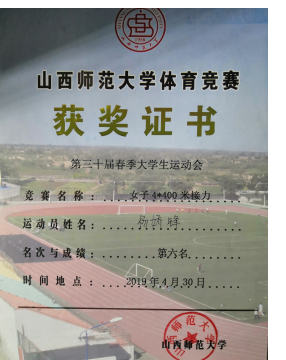 2019年第三十届春季大学生运动会第六名